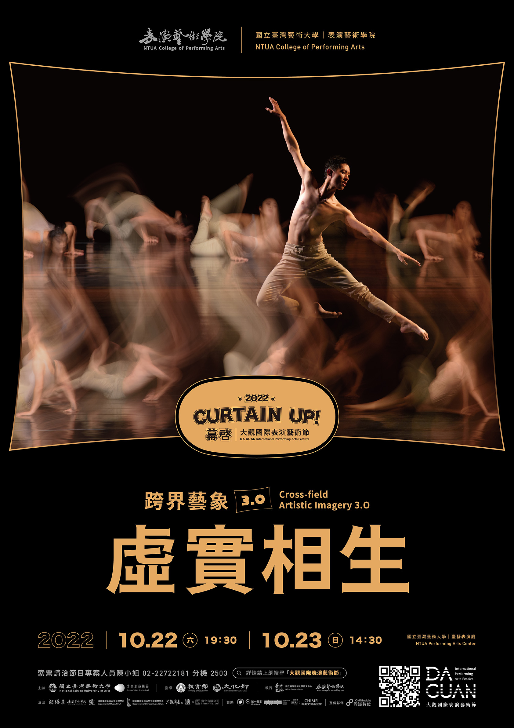 展望2022年,迎接第三年《虛實相生—跨界藝象3.0》,賡續「當代表演藝術跨界」為宗旨,再度匯集校內跨系所團隊群策群力合作,展演節目規劃內容,囊括頗受好評的臺藝大管弦樂團與國樂團;編舞鬼才黃懷德、許瑋博;蔡佾玲、譚天等戲劇新秀,更集結新媒體藝術團隊與各領域菁英齊聚一堂,共構2022年《虛實相生—跨界藝象3.0》藝術盛宴,敬請拭目以待。